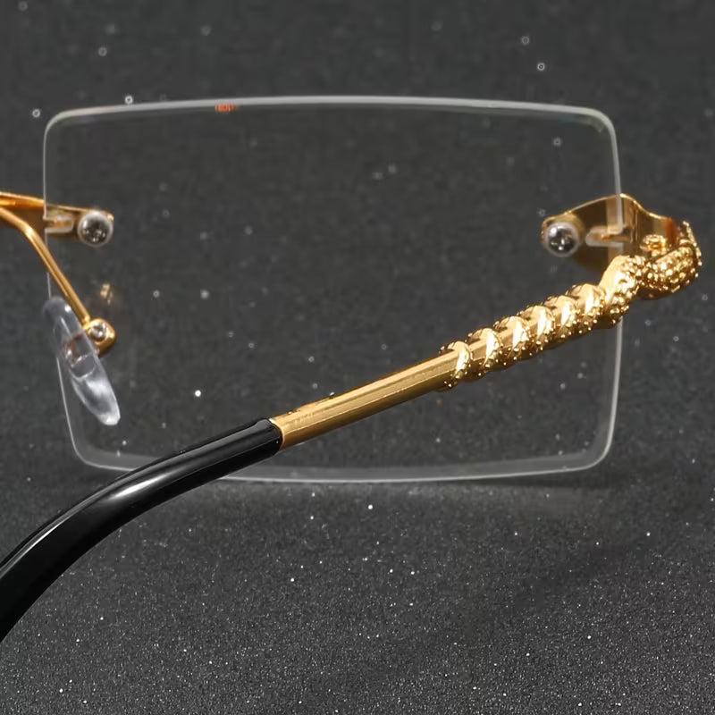 1 Pair of Men's Metal Rectangular Frameless Eyeglasses with Cobra-inspired Temple Tips, Suitable for Work, Business Meetings, Fashion, Casual Wear, and as Decorative Non- Glasses