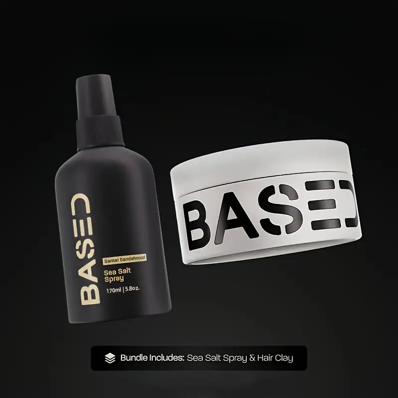 Sea Salt Spray & Clay Set - Natural Volumizing Spray with Kelp & B5 + Strong Hold Texturizing Clay with Sandalwood, Lightweight, Non-Greasy, Low-Shine, for Medium-Length, Thick, Straight or Wavy Hair
